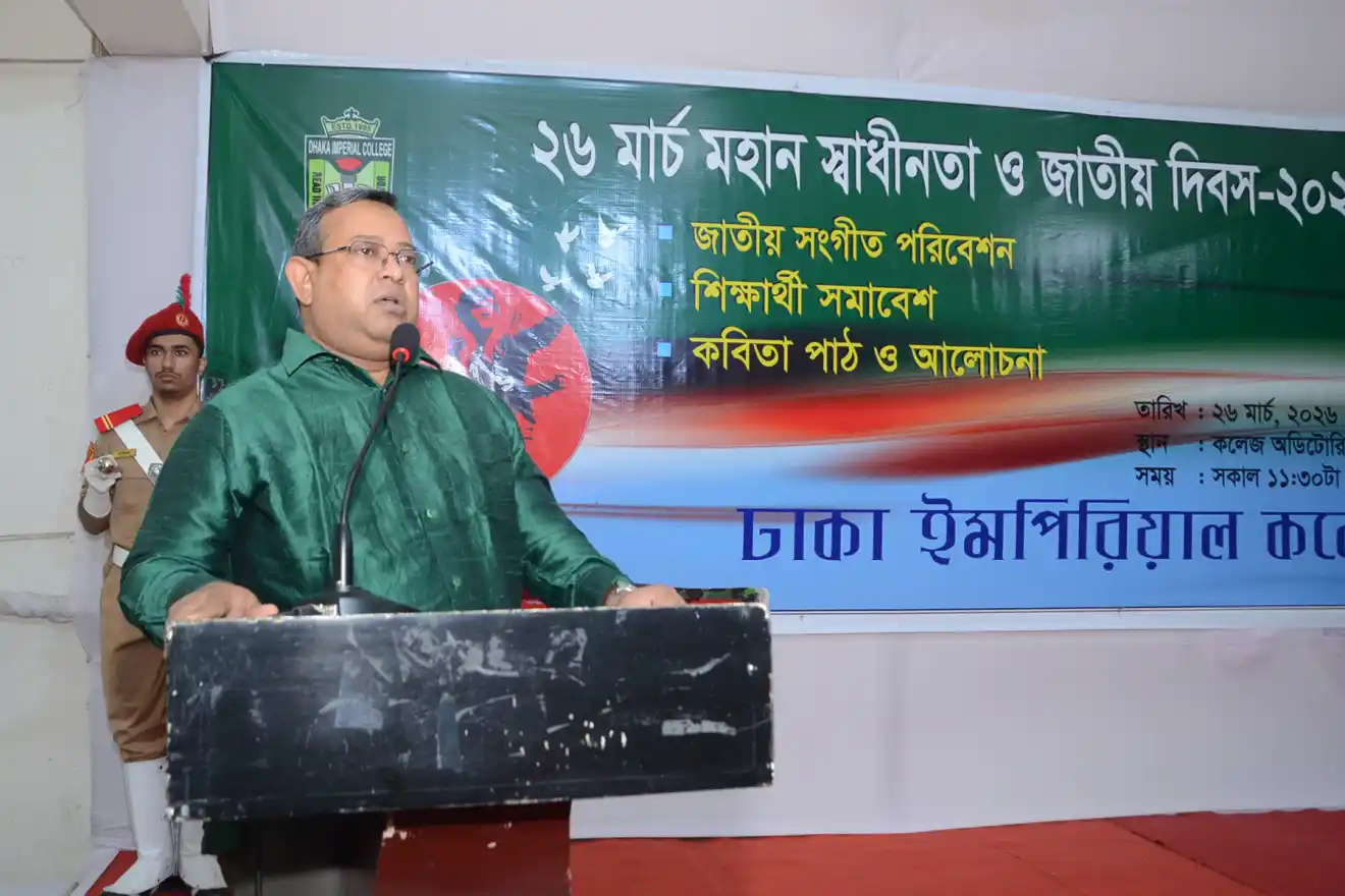 ২৬ মার্চ মহান স্বাধীনতা দিবস ও জাতীয় দিবস ২০২৬ উপলক্ষে আজ কলেজ ক্যাম্পাসে আয়োজন করা হয় আলোচনা সভার। কলেজ অধ্যক্ষ(রুটিন দায়িত্ব) মোহাম্মদ দেলোয়ার হোসেন মৃধা - এর সভাপতিত্বে উক্ত আলোচনা অনুষ্ঠানে প্রধান অতিথি হিসেবে উপস্থিত ছিলেন কলেজ গভর্নিং বাডির সম্মানিত সভাপতি অধ্যাপক ড. এস.এম হাফিজুর রহমান। এছাড়াও মহান মুক্তিযুদ্ধের উপর আলোচনা করেন বিভিন্ন বিভাগের সিনিয়র শিক্ষকবৃন্দ। অনু্ষ্ঠানে স্বাগত বক্তব্য রাখেন বাংলা বিভাগের সহযোগী অধ্যাপক ও ক্লাব ডিরেক্টর মোঃ ফয়সাল বার্ক। অনুষ্ঠান সঞ্চালনা করেন ব্যবস্থাপনা বিভাগের প্রভাষক মোঃ শাকিবুল হক শিকদার।